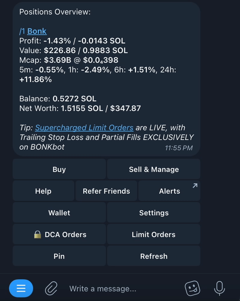 You can view and manage your open limit orders directly in BONKBot: