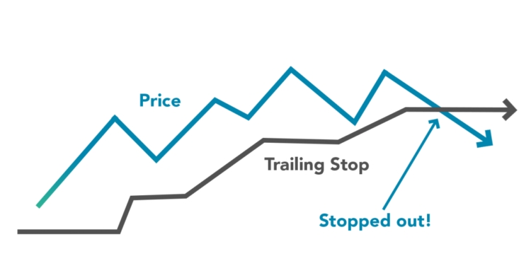 A Trailing Stop Loss is set as a percentage or multiple below the current market price.