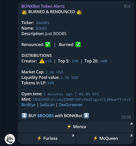 The BONKbot Token Alerts Channel is a tool on Telegram that can help you find gems among the sea of meme coins that constantly pop up on Solana.
