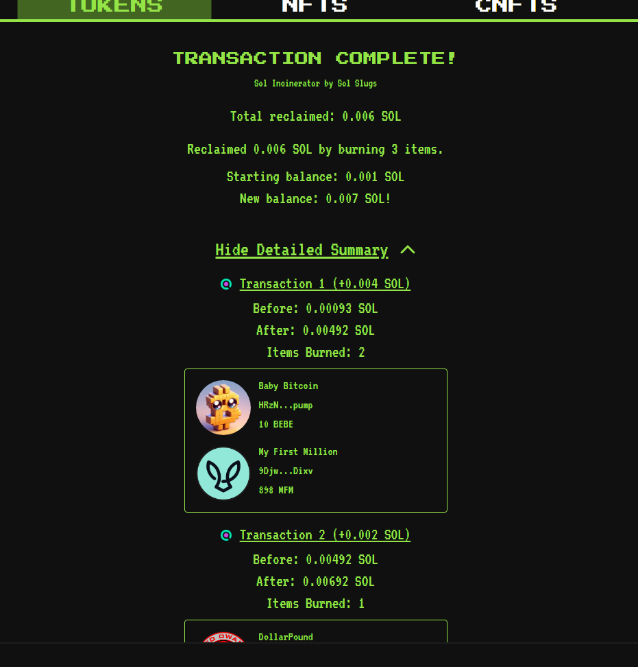* After successful burning, any eligible SOL will be automatically sent to your wallet.