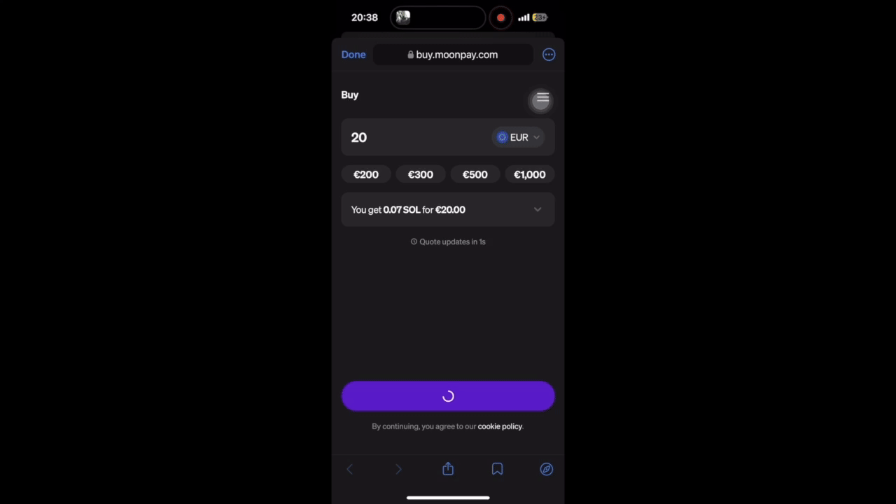 From there, MoonPay will prompt you to complete your SOL purchase.