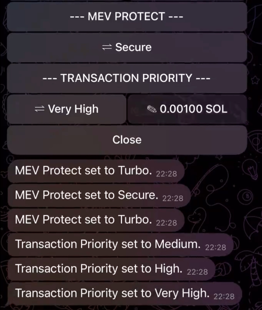 ⚡ Turbo: We use Jito to send transactions, protecting you from frontruns when it’s fastest. If regular is faster, the tx is not protected