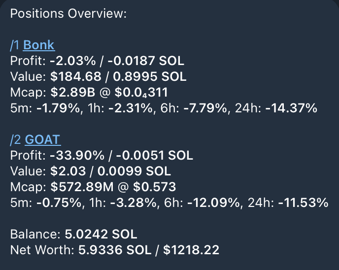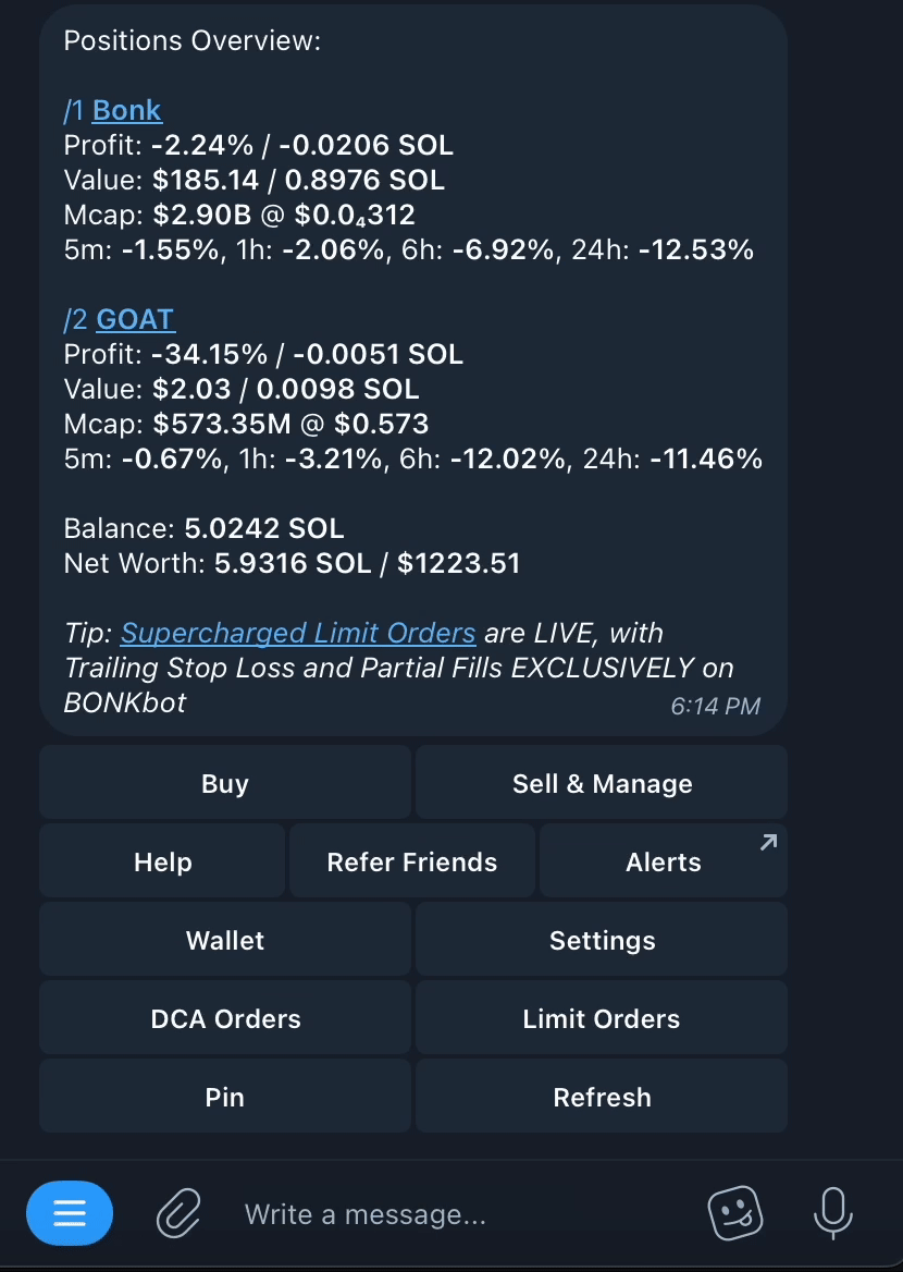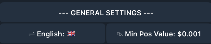 Filter out smaller or less relevant token positions in your BONKbot portfolio by setting a **Minimum Position Value**. This helps you focus on significant holdings and maintain a cleaner, more organized view of your positions.