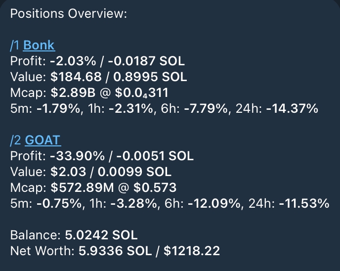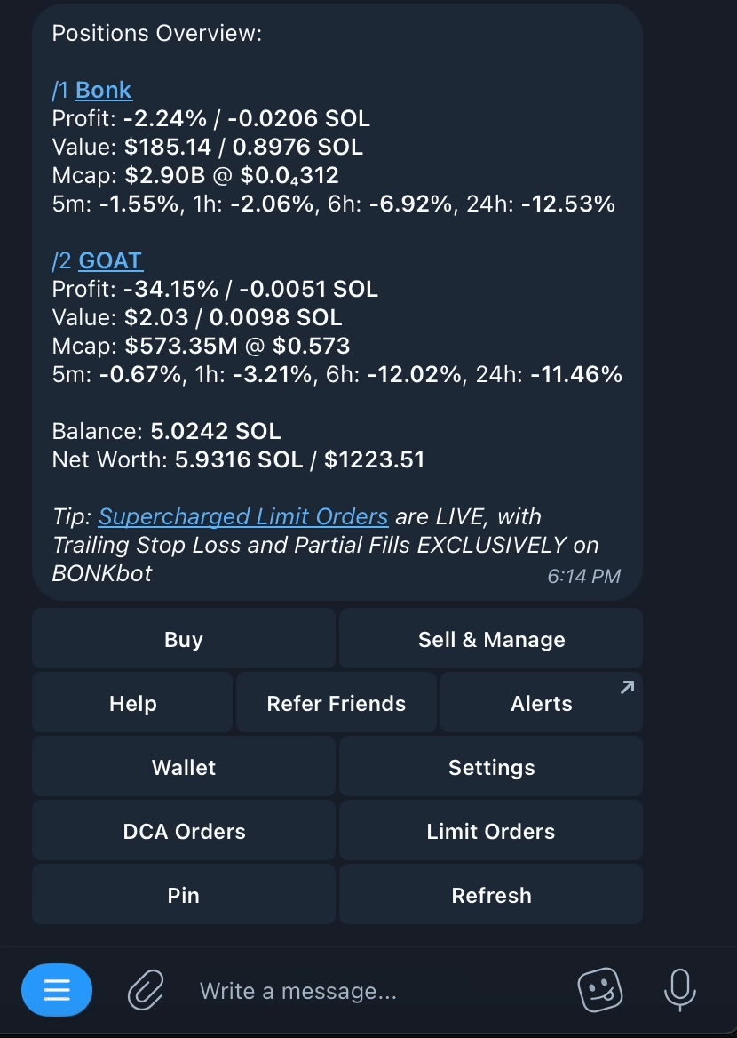 Filter out smaller or less relevant token positions in your BONKbot portfolio by setting a Minimum Position Value. This helps you focus on significant holdings and maintain a cleaner, more organized view of your positions.