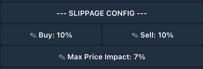 Buy Slippage: Set the maximum allowable price impact for buy transactions.