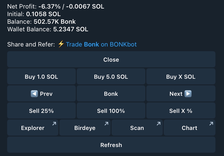 On the Manage Positions menu, you will be able to view your account on Solscan and the token's chart on Birdeye.