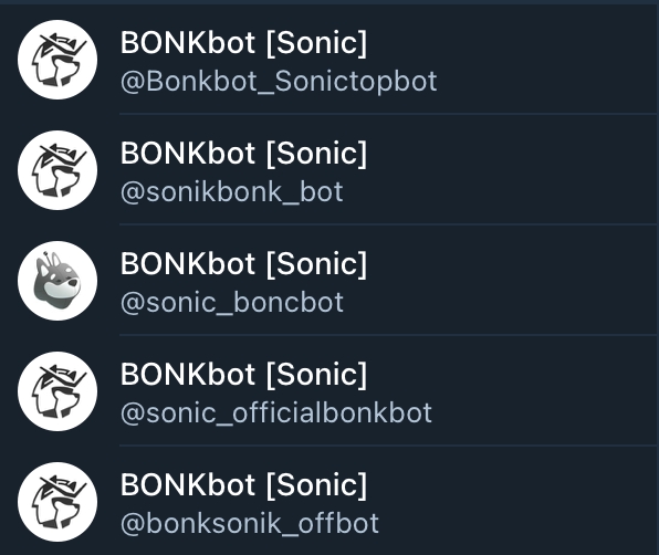 All official BONKbots are listed here . Please check the username carefully otherwise you may get scammed.